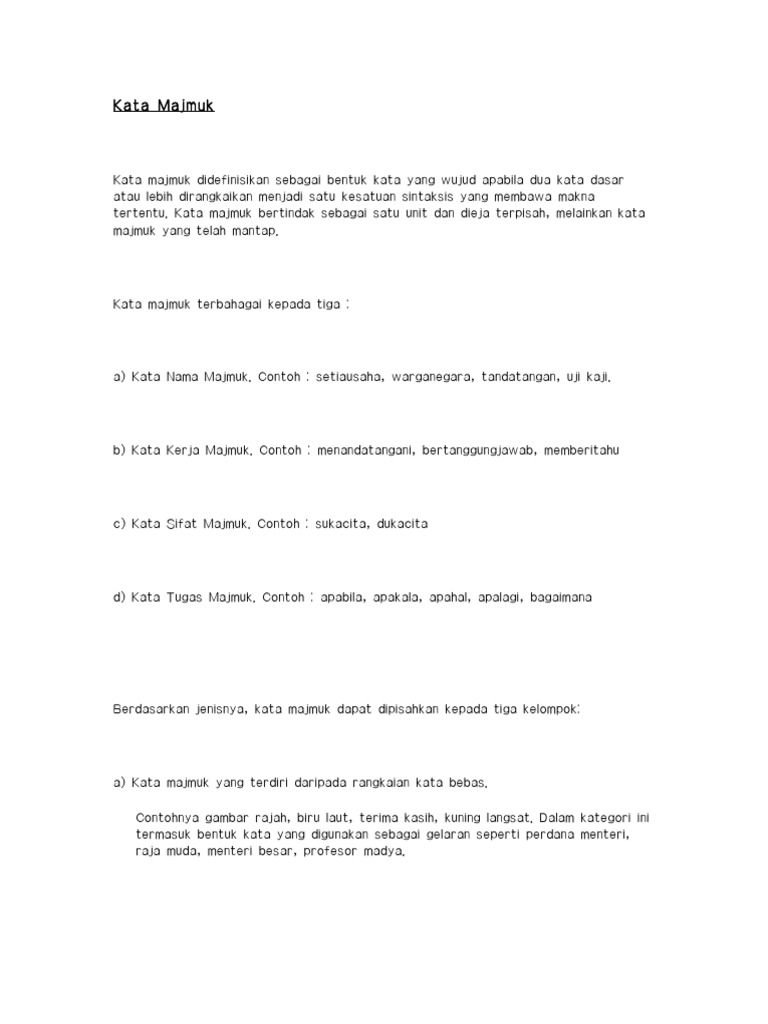 Contoh Ayat Majmuk Contoh My from contoh.my Arti kata majemuk adalah terdiri atas beberapa bagian yang merupakan kesatuan. Kata majemuk atau kompositum adalah gabungan morfem dasar yang seluruhnya berstatus sebagai kata yang mempunyai pola fonologis, gramatikal, dan semantis yang khusus menurut kaidah bahasa yang bersangkutan. Kata majmuk ialah proses merangkaikan dua kata dasar atau lebih yang membawa makna yang tertentu. 2) mengenai penambahan bunga kepada pokok berdasarkan waktu dengan tujuan. Eduwebtv bahasa melayu spm bina ayat. Arti lainnya dari majemuk adalah mengenai penambahan bunga kepada pokok berdasarkan waktu dengan tujuan mendapatkan dasar baru untuk menghitung bunga berikutnya. Ini ialah video pengenalan bagi modul yang bertajuk tatabahasa: Kata majemuk adalah proses pembentukan kata baru yang menjadi satu kata.