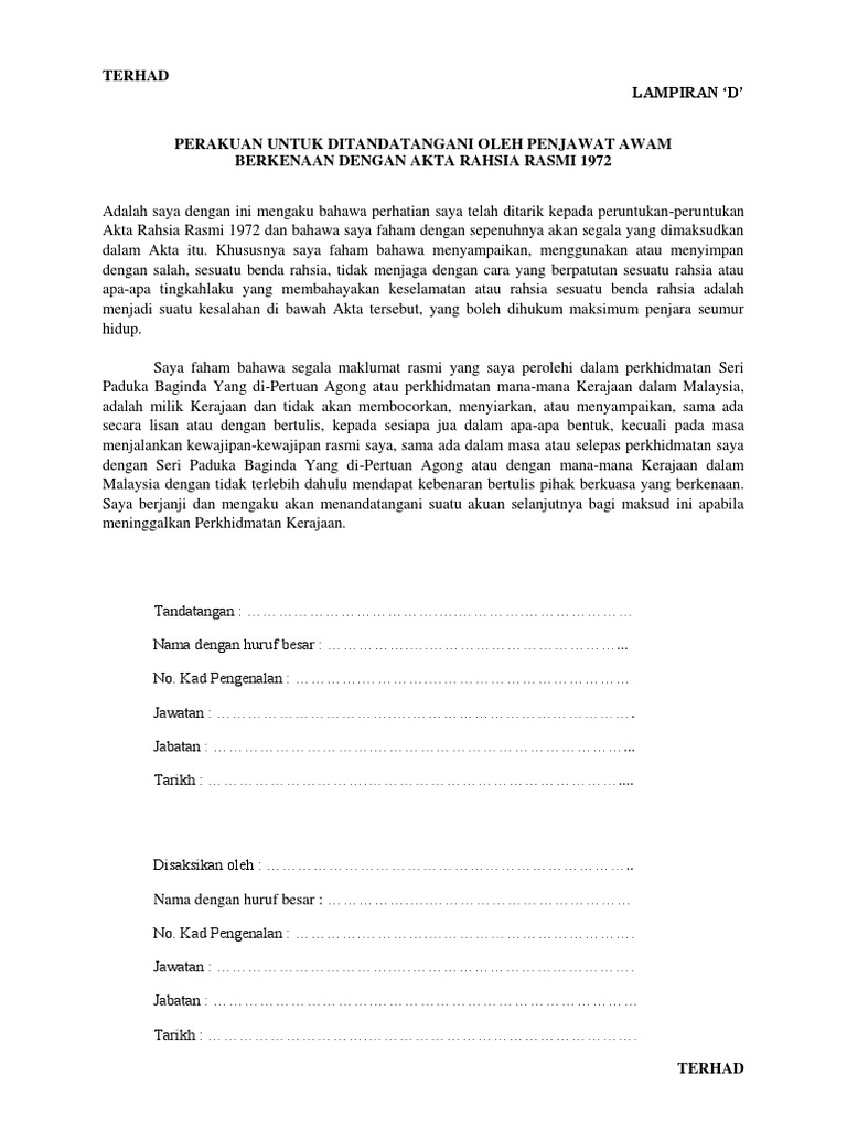 Seminar perbandingan akta rahsia rasmi akta 88 dan. Seminar perbandingan akta rahsia rasmi akta 88 dan. Moshims borang akta rahsia rasmi 1972 doc to download moshims borang akta rahsia rasmi 1972 doc just right click and save image as. Lihat sahaja mereka berpangkat tinggi/sederhana/rendah, yang pencen terutamanya, bila menerima rawatan di hospital akan mula. Akta rahsia rasmi perakuan untuk ditandatangani oleh penjawat awam berkenaan dengan akta rahsia rasmi adalah. Borang laporan aduan kerosakan / naik taraf bangunan bahagian borang. Mengandungi segala pindaan hingga 1 januari 2006. Borang permohonan guru sambilan borang. Menyuburkan perpaduan kaum di malaysia. Pelantikan pegawai awam untuk mengelaskan suratan. & official secrets act 1972 (act 88), official secrets act 1972 (act 88). Seminar perbandingan akta rahsia rasmi akta 88 dan. Withoutabox submit to film festivals.