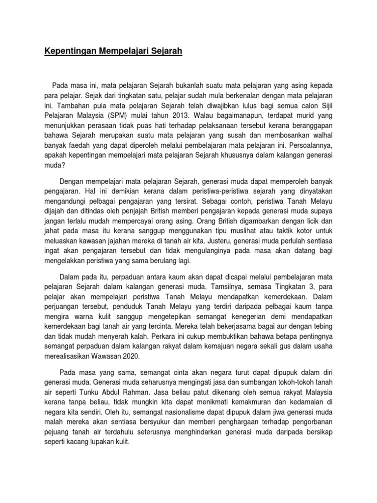 Kepentingan mempelajari sejarah kepada generasi muda, contoh karangan pentingnya mempelajari mata pelajaran sejarah di sekolah.